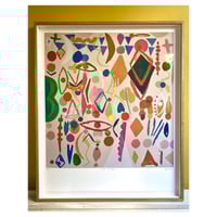 Fine Art Giclee Print with hand finished details of gold foil and fluorescent colours. Printed on 300GSM Archival Quality Fine Art Paper.